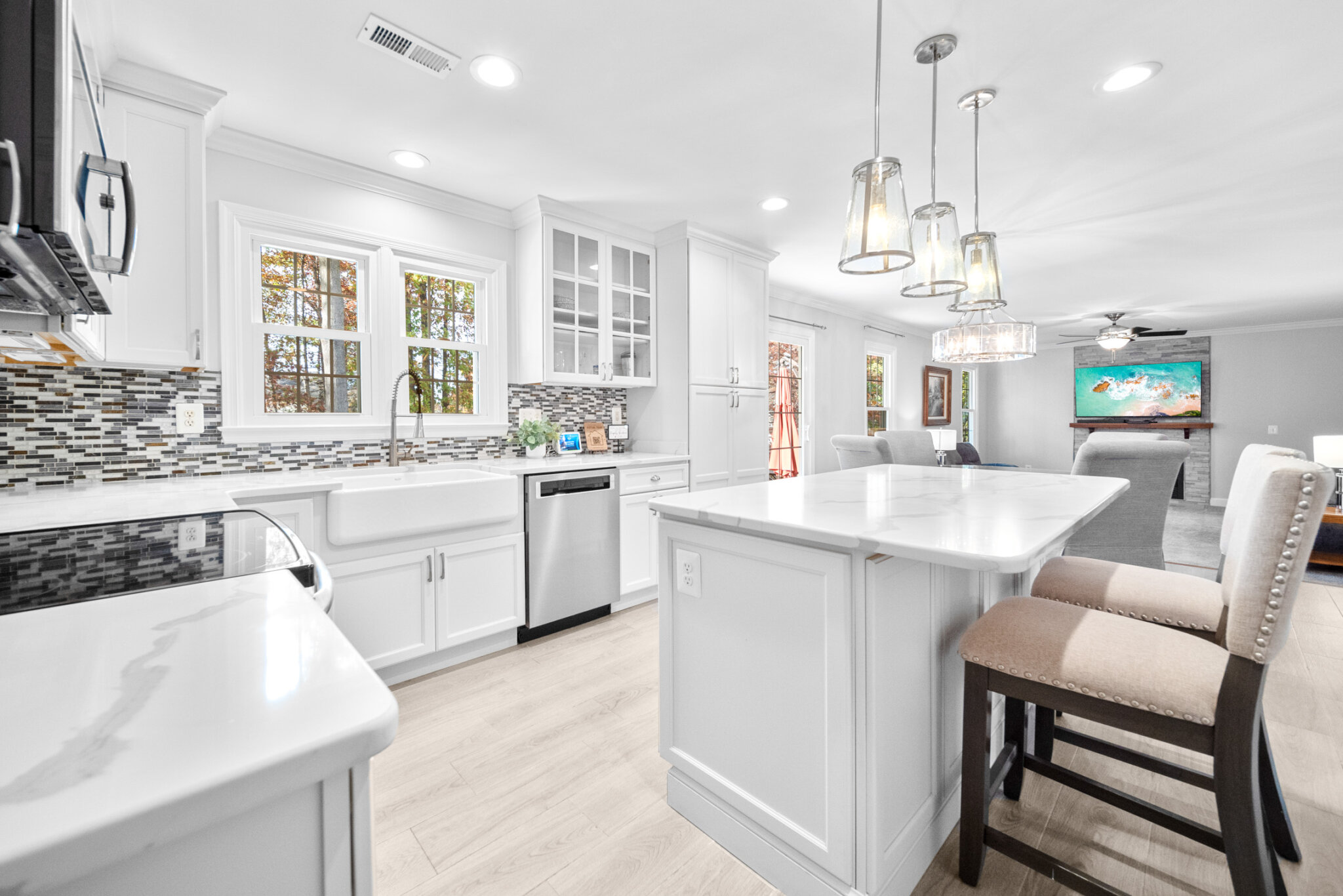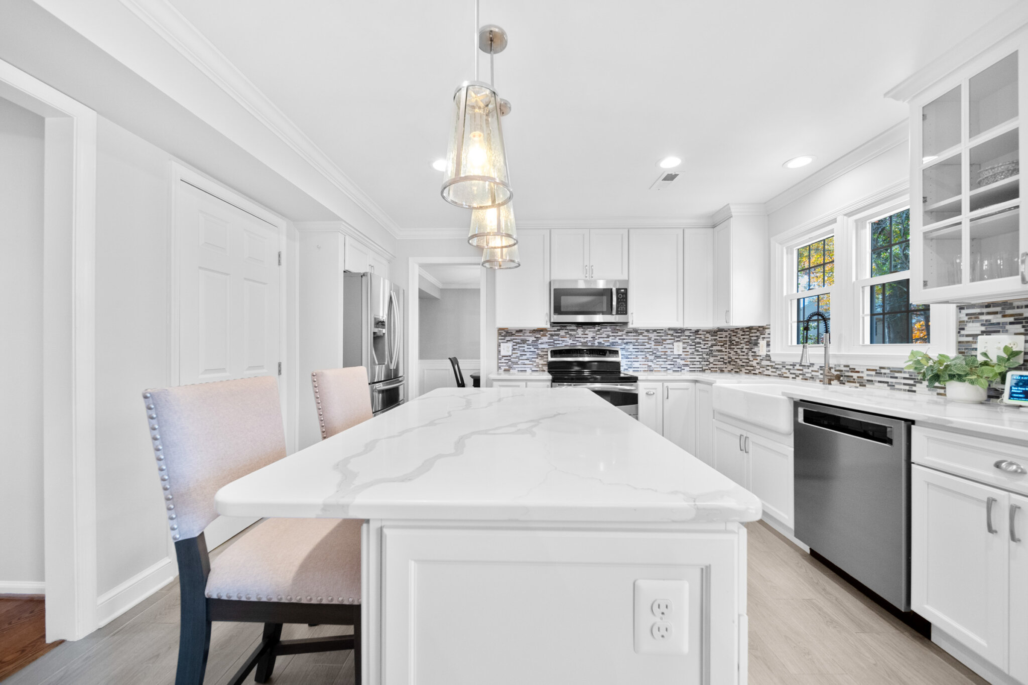 Welcome to 10902 Pennycress Street — where timeless charm meets modern comfort! Nestled in the sought-after Wellington neighborhood of Manassas, this beautifully updated 4-bedroom, 3.5-bath colonial offers over 3500 sq ft of finished living space on a peaceful, tree-lined lot. Step inside to find a bright, open layout featuring a fully renovated kitchen with quartz countertops, stainless steel appliances, custom cabinetry, and a spacious island perfect for gathering. Both full bathrooms upstairs have been stylishly updated with modern finishes, while the renovated powder room adds a touch of everyday luxury. The inviting family room with a cozy fireplace flows seamlessly to the outdoor patio and lush, professionally landscaped yard, complete with mature trees and vibrant seasonal plantings — the perfect setting for entertaining, play, or quiet relaxation. Downstairs, the finished basement is an entertainer’s dream with a full bathroom, wet bar, second fireplace, and flex space great for an office or media room. Upstairs, four generous bedrooms provide comfort and versatility, including an elegant primary suite with a walk-in closet system and renovated en-suite bath. Located minutes from shopping, dining, and major commuter routes — yet tucked in a quiet, established community — this home offers the ideal blend of style, space, and beautifully maintained curb appeal. The yard includes an underground electric fence and sprinkler system. The hot water heater, furnace, roof and windows have all been replaced within the last five years. This is one you don’t want to miss!