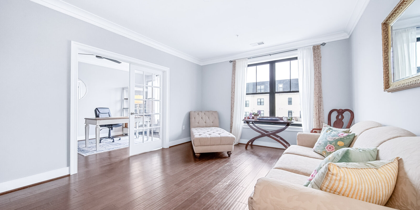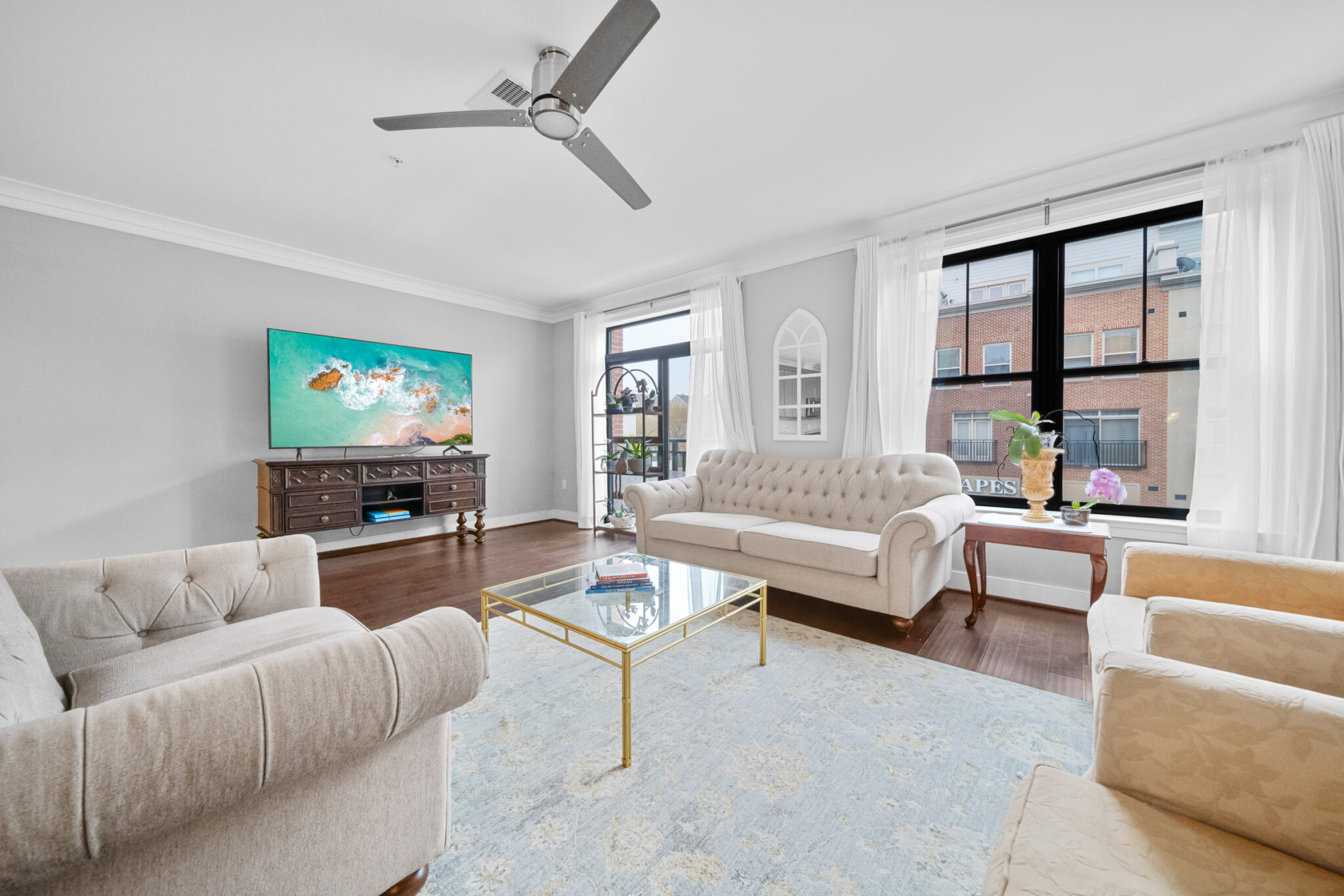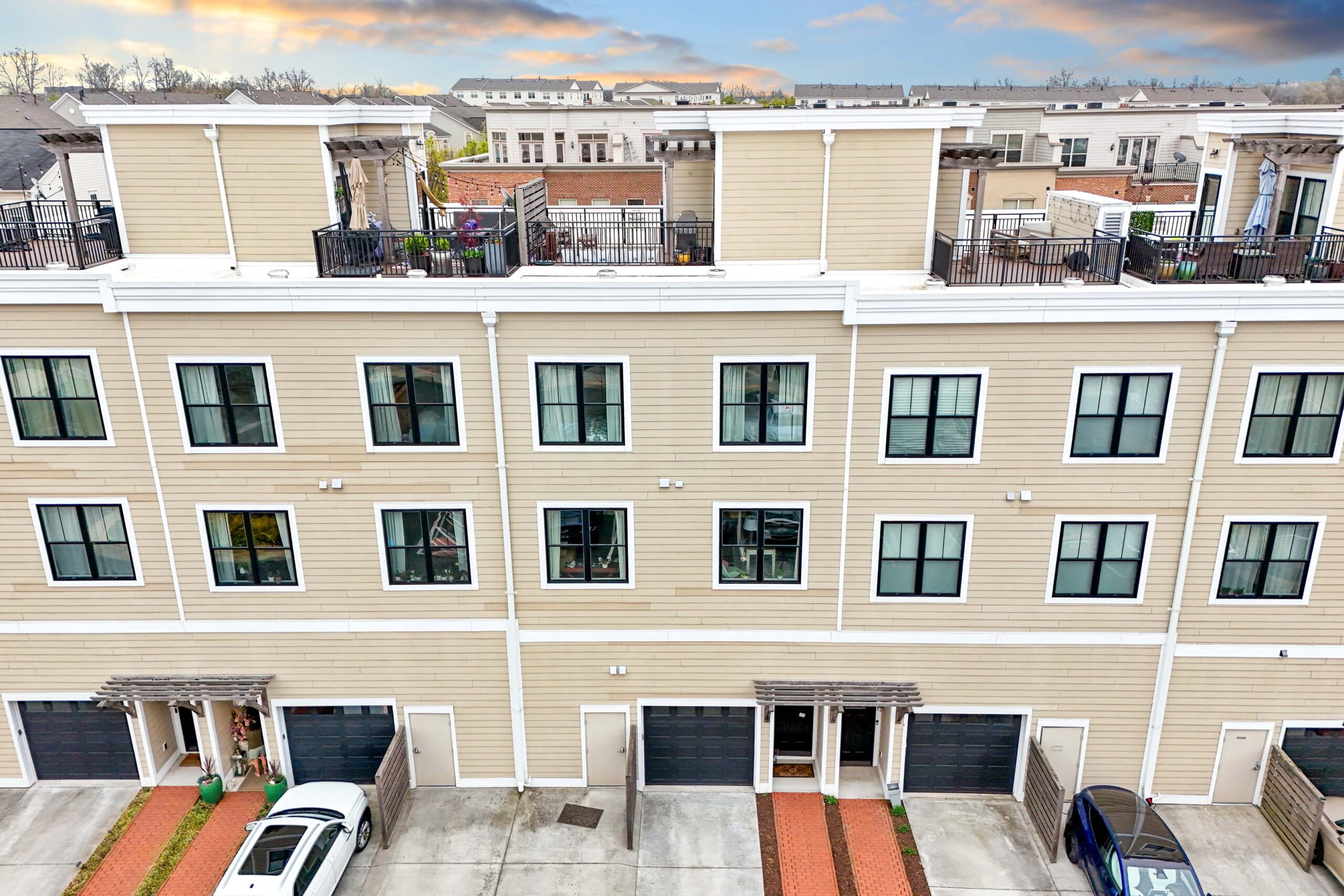 RARELY AVAILABLE Urban-Styled Townhome/Condo at Lansdowne Town Center! Home offers an EXCEPTIONAL floor plan with 9″ ceilings throughout. Parking is a breeze with 1-car garage + Driveway space + parking area for visitors! MAIN LEVEL includes stunning Island Kitchen with breakfast bar + breakfast table area and large open concept Family Room. Formal Dining Room + Formal Living Room + Office w/ french doors – great for working from home! BEDROOM LEVEL features a lovely Owner’s suite with sitting room + private balcony. You will also love the lux bathroom and walk in closet! Secondary bedrooms each have walk-in closets and a large modern hall bath with dual vanity. You will also find a bedroom level laundry room with a Bosch Washer/Dryer. Check out the ROOFTOP deck with stunning views to enjoy a sundown cocktail, seasonal fireworks, or cookout with ease with the Gas Grill Hookup! Enjoy all that Lansdowne Town Center has to offer – Walk to Shops, Restaurants, Grocery, Salon services, Pet care shops + vet, and so much more! The Town Center also has a wonderful courtyard lawn with a summer concert series, seasonal events, and can be enjoyed throughout the year. Please note: Association fees INCLUDE Comcast Internet / Cable + Fitness / Swimming Pool.