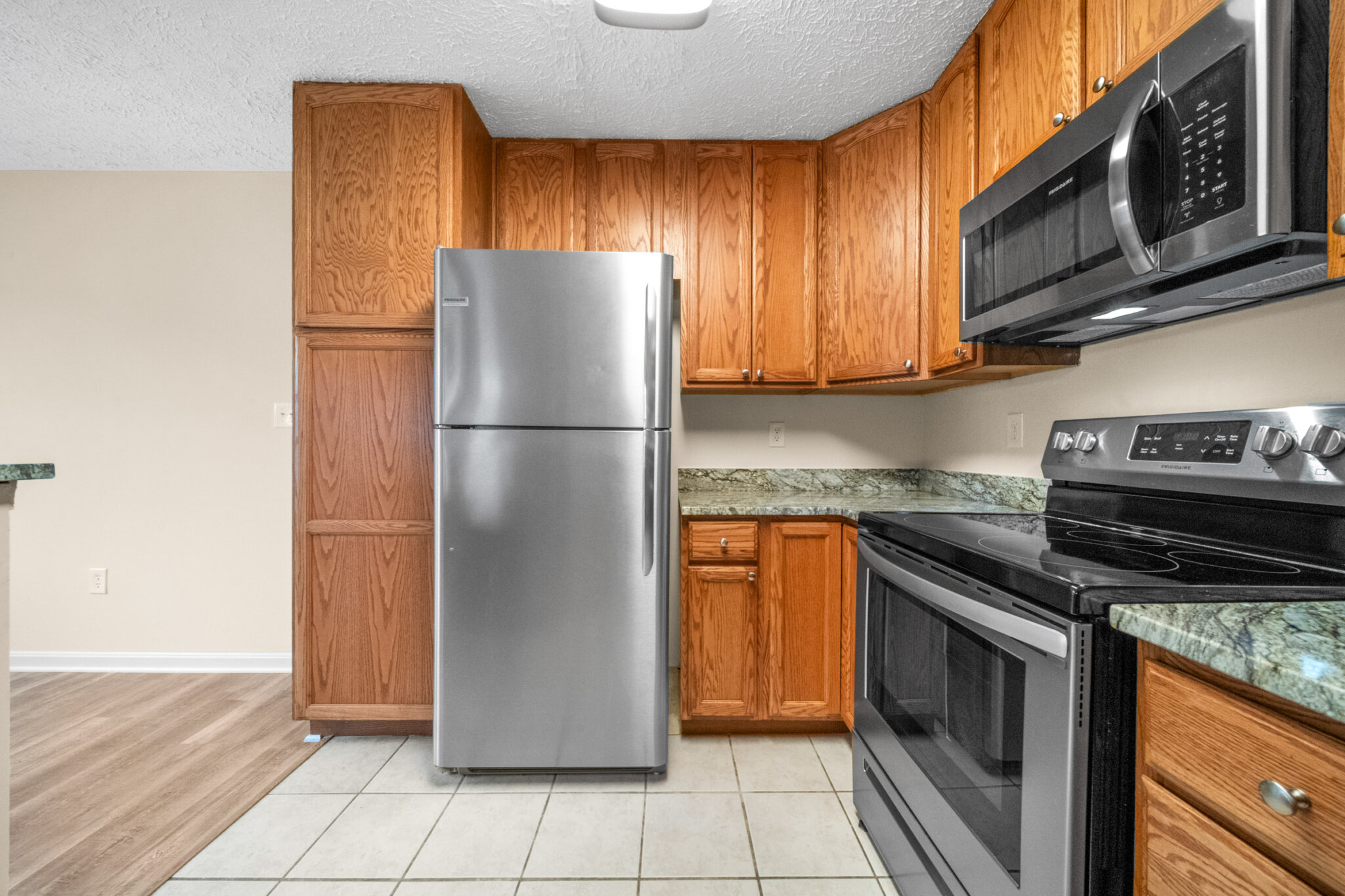 The kitchen shines with brand-new granite countertops, stainless steel appliances, and a clean, contemporary feel—perfect for everyday living and entertaining alike. Bathrooms have been tastefully updated, offering a fresh, move-in-ready experience.